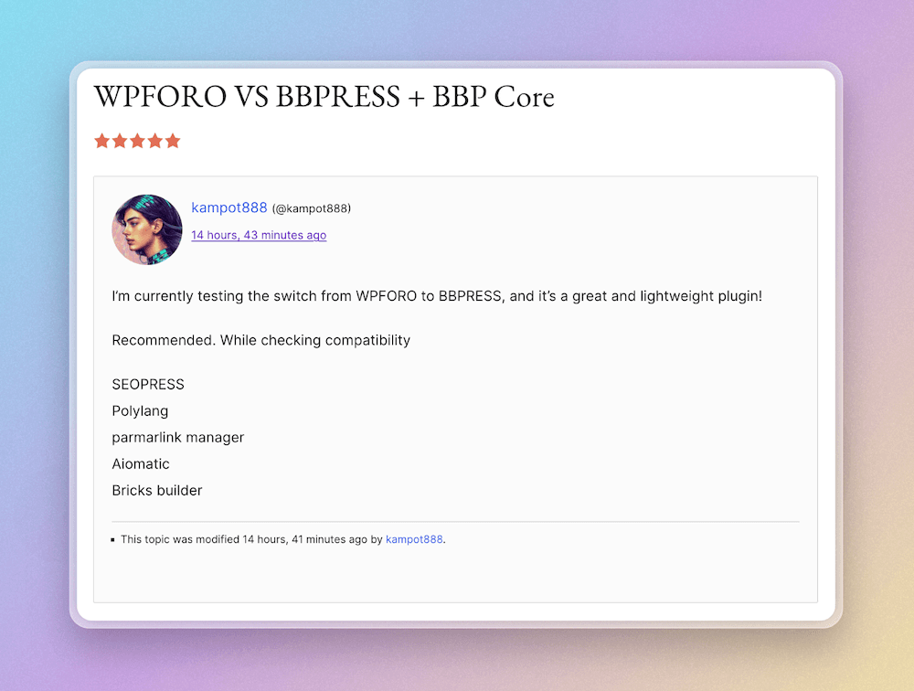 When deciding on a forum plugin for your WordPress site, it’s essential to consider both the features and user experience of each option. While testing the transition from wpForo to Forumax, many users have highlighted Forumax lightweight nature and seamless compatibility with essential tools like SEOPress, Polylang, Permalink Manager, Aiomatic, and Bricks Builder.